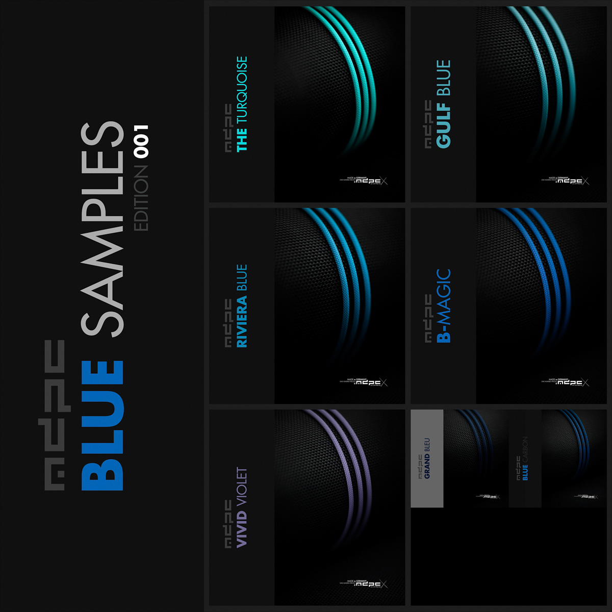 Az MDPC-X BLUE kábelharisnya mintacsomagban minden mintadarab legalább 45 cm-es.