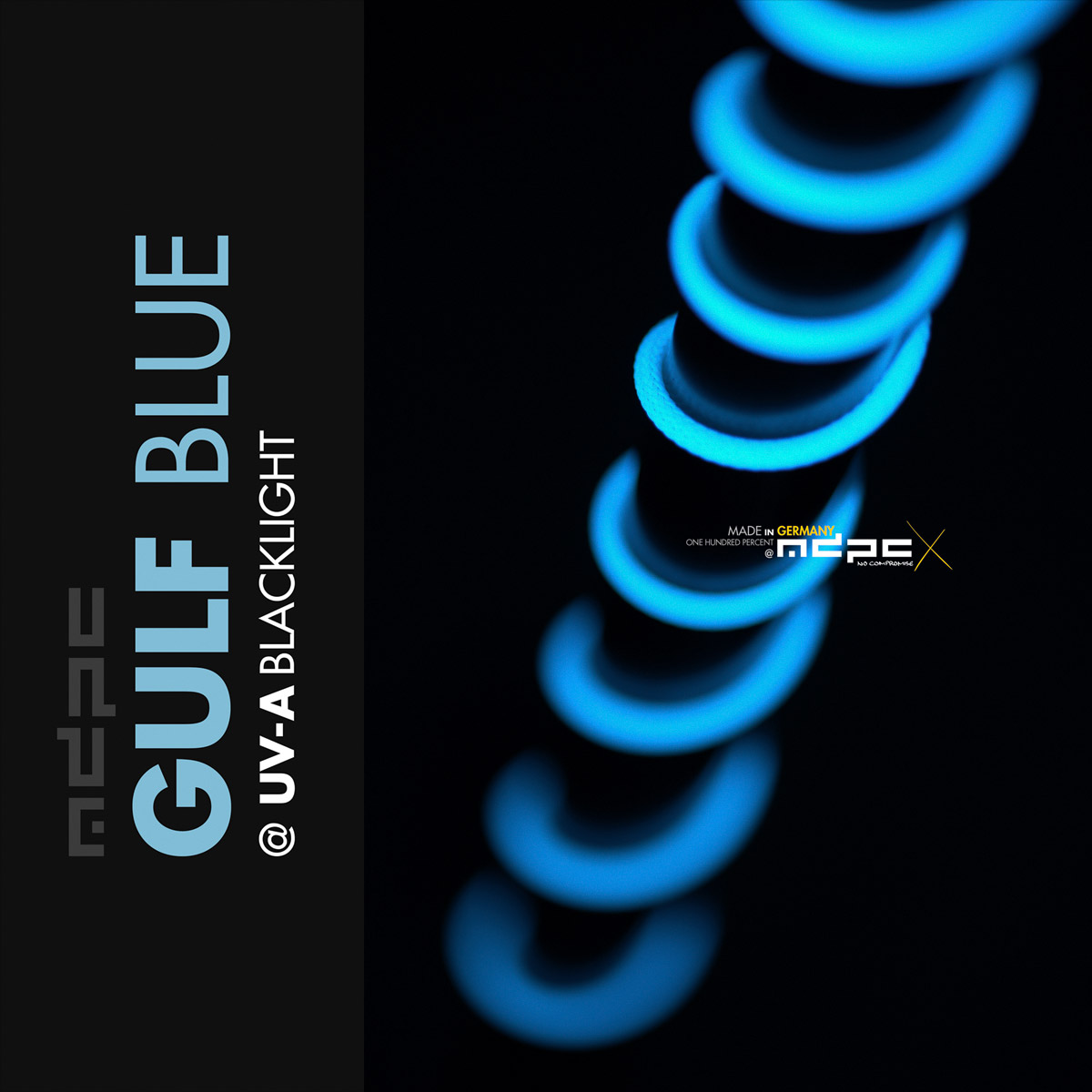 Az MDPC-X GULF-BLUE kábelharisnya egy olyan színt képvisel, mely már 1970 óta legendás az autóversenyzésben. PAPAYA-ORANGE kábelharisnyával és egy kis fekete és fehér kiegészítéssel máris megkapjuk a Gulf sémát. A Gulf-Blue az eddig készült legvilágosabb kék árnyalat az MDPC-X -től. Nagyon jól érezhető rajta a “jeges” beütés. Természetesen a gyártótól megszokott módon extrém UV-reagens a termék UV-fénynél, de természetes napfény hatására is látható a reakció.