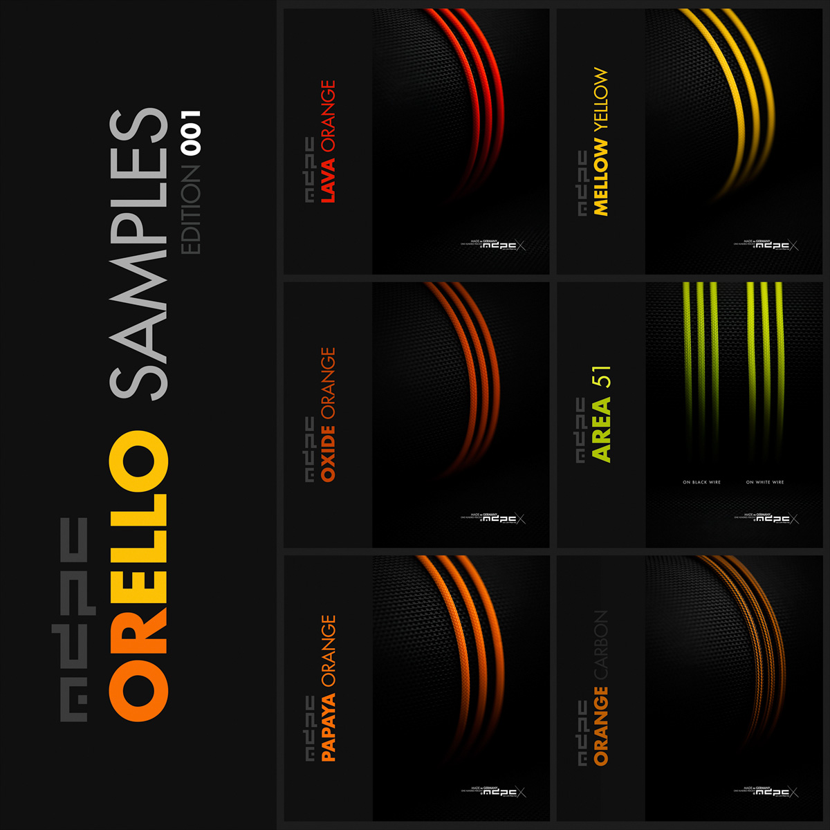 Az MDPC-X ORELLO kábelharisnya mintacsomagban minden mintadarab legalább 45 cm-es.